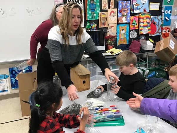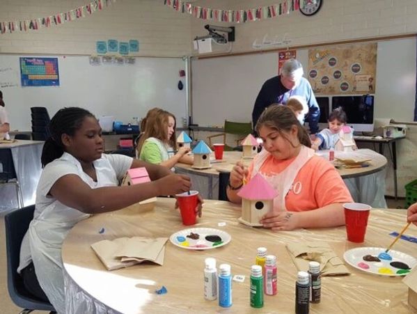 Don & Kathy Sawicki and Brita Borden led the class in painting bird houses at their lesson on February 5